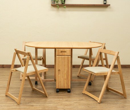 バタフライ ダイニング 5点セット 移動可能 キャスター付き 天板折りたたみ 楕円形 円卓ダイニング テーブルチェア 収納 イス 椅子 机 ディスク サカベ3323780