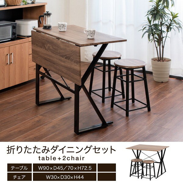 ダイニングセット 折りたたみ ダイニングテーブル チェア 2点 セット 2人用 幅90 バタフライテーブル スツール ダークブラウン ブラック 木製 スチール